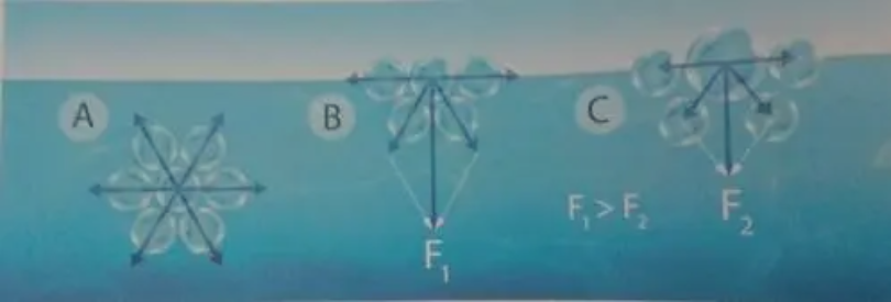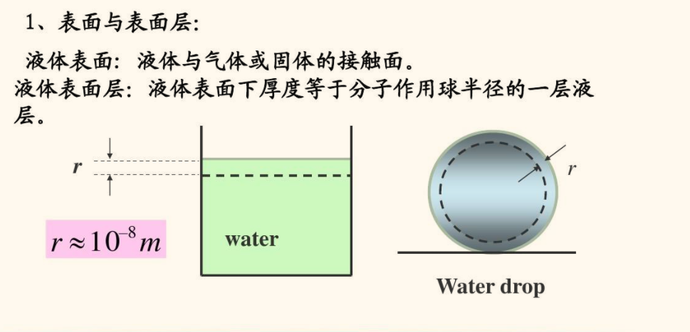 (B)在界面上,表面張力指向液體內(nèi)部;(C)表面活性劑降低了表面張力。