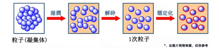 比如石墨在水中沉降,這就是沉降/分層,因密度差導致重力分離。還有就是如炭黑在漿料中結塊,這就是聚集/絮凝,顆粒因吸引力重新團聚。這兩點都是動力學不穩(wěn)定造成的,為避免這些現(xiàn)象的出現(xiàn),我們主要先認識分散劑的作用,它就能很好的得到改善。分散劑的作用主要體現(xiàn)在以下幾個方面: